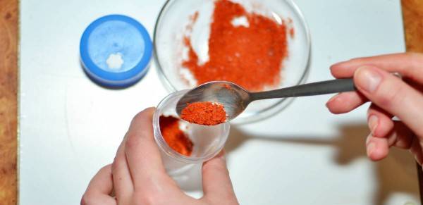 Verser une petite quantité en poudre de piment de cayenne dans un flacon, ajouter assez d'alcool et mélanger bien de sorte qu'il devient une texture de la sauce-like.